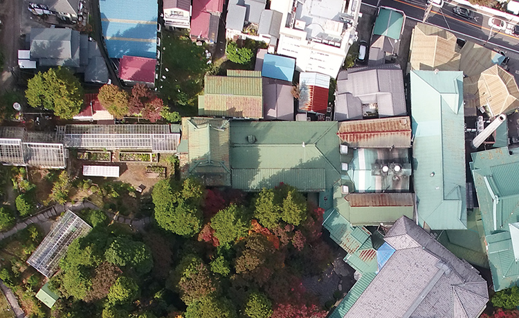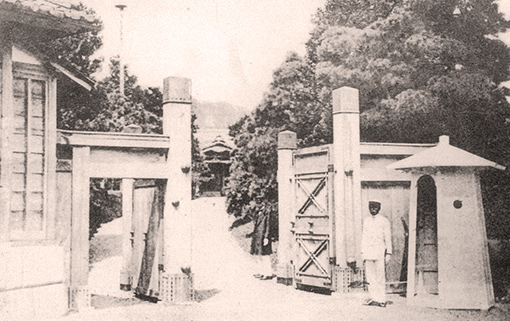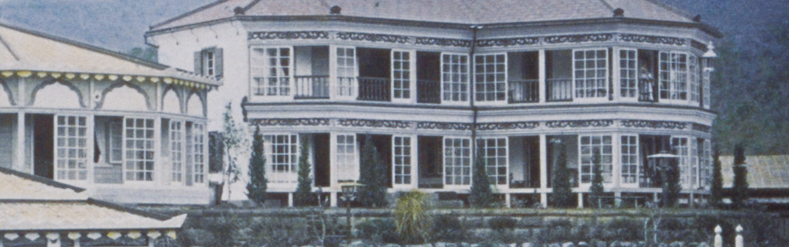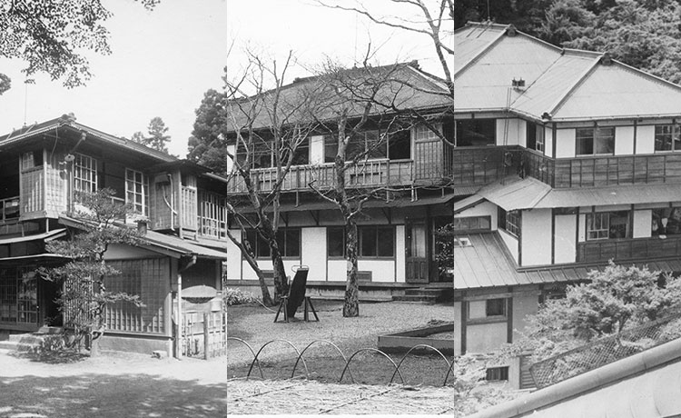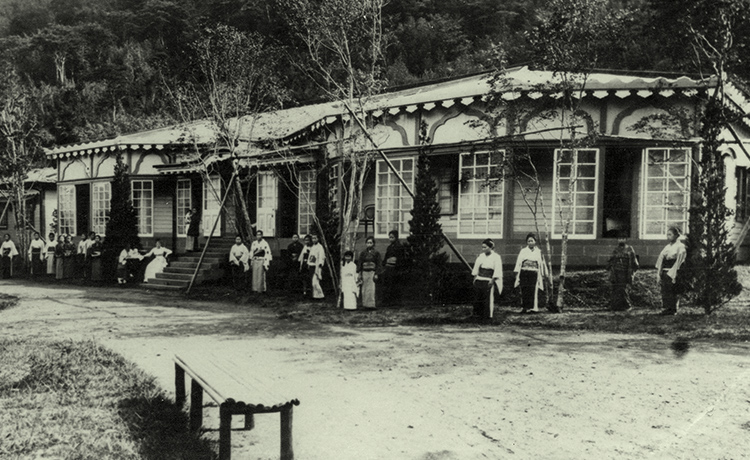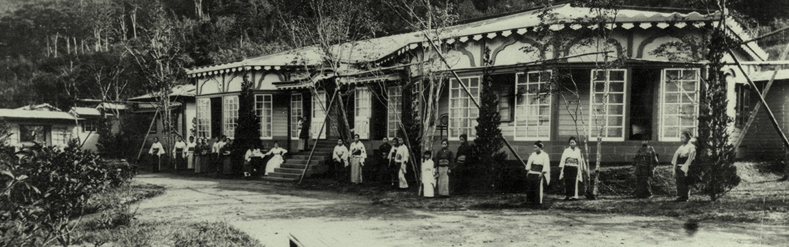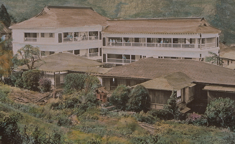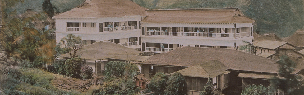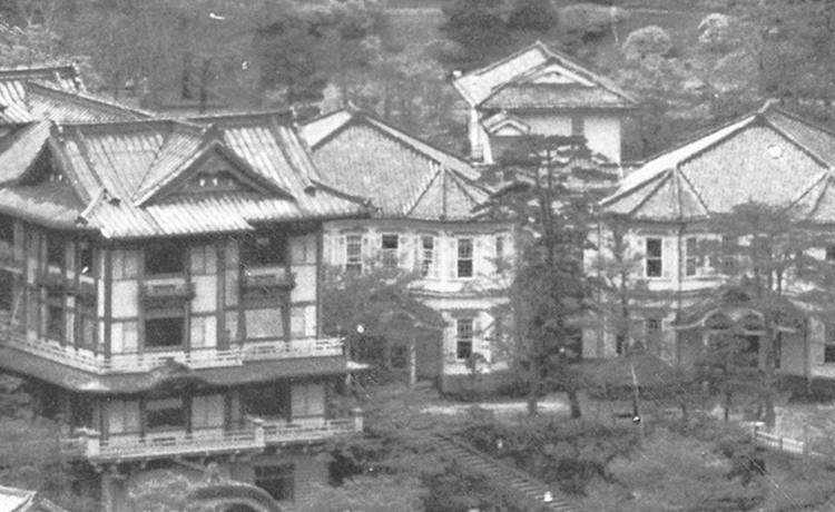 In 1886 a two-storied Western-style building was completed close to the front of the current DINING ROOM. Its charming design owed to a dogleg-shaped facade and rounded features. After THE MAIN was completed in 1891, it was referred to as the "lower Western-style building" due its position in relation to THE MAIN. In 1920 it was relocated to higher ground behind the GREENHOUSE and thus became known as the "upper Western-style building." For many years thereafter it was affectionately called the HERMITAGE owing to its appearance, but unfortunately in 1985 it had to be demolished due to structural deterioration.